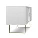 • Features two (2) Doors with discreet hand pulls, open central area with adjustable shelving and solid metal angled legs in a gold finish for reliable support