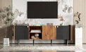 Mid Century TV Stand & 3 Cabinets, Media Console Table For Tvs Up To 70'', Entertainment Center With Storage For Living Room - Black / Brown