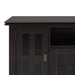 - Features a large centrally located open area with one (1) flip down drawer, one (1) pull out drawer as well as four (4) storage spaces with tempered glass doors.