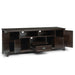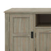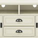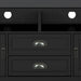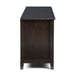 - Features two (2) centrally located open areas with two drawers as well as two (2) framed doors with enclosed spaces; the two (2) large side storage cabinets open to one adjustable shelf each.