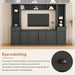 Minimalist - Entertainment Wall Unit Set With Bridge For TVs Up To 75", Ample Storage Space TV Stand With Adjustable Shelves - Black