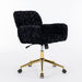 Office Chair, Artificial Rabbit Hair Home Office Chair With Golden Metal Base, Adjustable Desk Chair Swivel Office Chair, Vanity Chair - Black