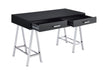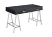 Coleen - High Gloss Writing Desk With USB - Black / Chrome