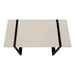 - Sturdy Metal Legs: The desk is supported by robust metal legs with a finish, integrated into the desktop for an intriguing visual effect and enhanced stability.