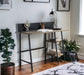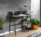 - Modern Design: This writing desk offers a modern and functional workspace with a rustic oak finish complemented by black powder-coated metal legs, providing a stylish and durable addition to any office or study area.