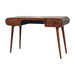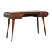 - Artisan Furniture Solid Wood Chestnut London Arch Writing Desk - This solid wood writing desk has been constructed from 100% solid mango wood in a chestnut finish and offers a rounded edge design as weell as a comfortable cut out to offer comfort when sitting down. It features 2 drawers which come with shiny knobs and Nordic style legs. A great, simple addition to a study or living room.