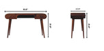 - Features: Soild Mongo Wood, Chestnut Finish, Nordic Legs, 2 Drawer, Handcrafted, Sustainable