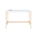 - Modern Design: This writing desk features a high-gloss wooden top paired with an open gold metal base, offering a sleek and contemporary aesthetic that enhances any workspace.