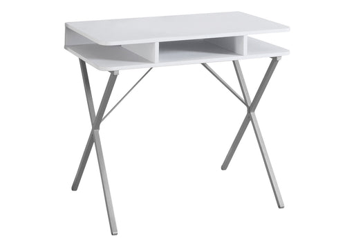 8th StreetModern Design: Upgrade your home office with a sleek, modern computer desk featuring a white laminate top and a contemporary grey metal base ...