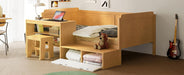 Twin Size Daybed With Storage Shelves And Lockers, Multi Functional Bed With Study Desk And Matching Stool - Natural