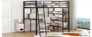 Full Size Loft Bed With 3 Layers Of Shelves And Desk, Frame Bed - Black