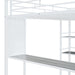 Crafted of metal in a clean painted finish, this loft bed features a sleek, modern design with slatted guardrails. The three open shelves provide ample space to organize and display your essentials. Equipped with a spacious desk and a board underneath, this bed creates a comfortable and functional space for work, reading, and relaxation. A beautiful and practical addition to any bedroom.