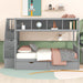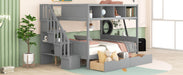 Twin Over Full Bunk Bed With Shelfs, Storage Staircase And 2 Drawers - Gray