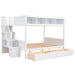 Twin Over Full Bunk Bed With Shelfs, Storage Staircase And 2 Drawers - White
