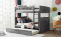 Full Over Full Bunk Bed With Twin Size Trundle, Guardrails - Brushed Gray