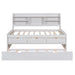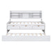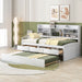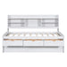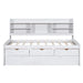 Twin Size Captain Bed With Built In Bookshelves, 3 Storage Drawers, And Trundle - White Washed