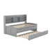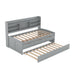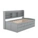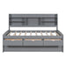 Twin Size Captain Bed With Built In Bookshelves, 3 Storage Drawers, And Trundle - Gray