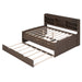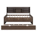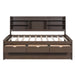 Full Size Captain Bed With Built In Bookshelves, 3 Storage Drawers, And Trundle - Antique Brown