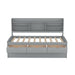 Full Size Captain Bed With Built In Bookshelves, 3 Storage Drawers, And Trundle - Light Gray