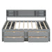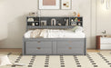 Full Size Daybed With 2 Bedside Cabinets, Upper Shelves And 4 Drawers - Gray