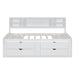 Full Size Daybed With 2 Bedside Cabinets, Upper Shelves And 4 Drawers - White
