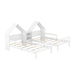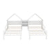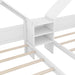 Double Twin Platform Bed With House Shaped Headboard And Built In Nightstand - White