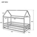 Twin Size Floor Wooden Bed With House Roof Frame, Fence Guardrails - Gray