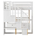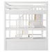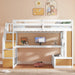 Full Size Loft Bed With Desk And Shelves, 2 Built In Drawers, Storage Staircase - Natural / White