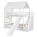 Twin Over Twin House Bunk Bed With Trundle, Storage Staircase, Roof And Window Design - White