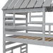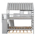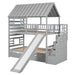 Twin Over Twin House Bunk Bed With Trundle, Storage Staircase, Roof And Window Design - Gray