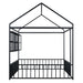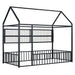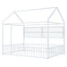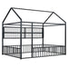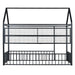 This stylish metal bed frame features a unique house-shaped design, adding a playful yet modern touch to any bedroom. With sturdy metal construction, it ensures long-lasting durability and a secure night's sleep. The back of the bed is equipped with four convenient metal grid shelves, providing extra storage for your essentials while maximizing space. This bed frame blends functionality with a whimsical design, making it a standout piece in any room.
