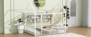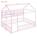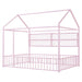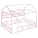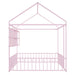 Full Size Bed House Frame With Fence And Shelves - Pink