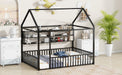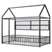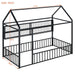 Twin Size Bed House Frame With Fence And Shelves - Black