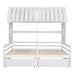 Twin Size House Platform Beds With 2 Drawers, Side By Side Design For Shared Bedrooms - White