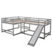 Full And Twin Size L-Shaped Bunk Bed With Slide And Short Ladder - Gray