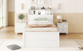 Twin Size LED Platform Bed With Trundle With Storage Headboard With Drawers - White