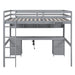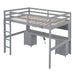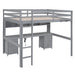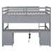 Full Size Loft Bed With Built In Desk, Storage Cabinets, Drawers, Charging Station, And Bedside Tray - Gray