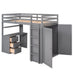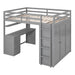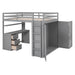 Full Size Loft Bed With Drawers, Desk, And Wardrobe - Gray
