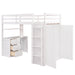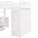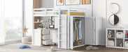 Full Size Loft Bed With Drawers, Desk, And Wardrobe - White