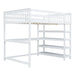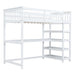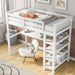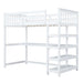 Full Size Loft Bed With Storage Shelves And Under Bed Desk - White
