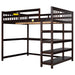 Full Size Loft Bed With Storage Shelves And Under Bed Desk - Espresso