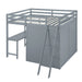Full Size Loft Bed With Wardrobe And Desk And Shelves - Gray