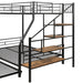 Twin Over Full Size Metal Bunk Bed With Trundle And Storage Staircase - Black