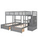 Full Over Twin & Twin Classic Triple Bunk Bed With Drawers And Guardrails - Gray
