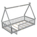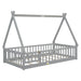 Twin Tent-Shaped Floor Bed, With Guardrails, Slats, Door - Gray