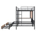 Full Over Twin & Twin Triple Bunk Bed With Drawers, Multi-Functional Frame With Desks And Shelves In The Middle - Black