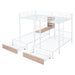 Full Over Twin & Twin Triple Bunk Bed With Drawers, Multi-Functional Frame With Desks And Shelves In The Middle - White