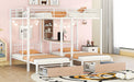 Triple Bunk Bed With Drawers, Multi-Functional Frame With Desks And Shelves In The Middle