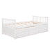 Maximized space :The daybed with handy pull-out trundle and three functioning drawers takes up minimal space for the spontaneous sleepover guest. The trundle and drawers can easily be pulled in and out for maximum storage space, perfect for organizing anything from clothes and bed linens to toys and games. Such a versatile piece, bringing functionality, versatility, and style to your home, perfect for those who have lots of visitors.