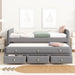 Twin Size Upholstered Daybed With Twin Size Trundle And Drawers - Gray